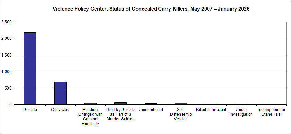 *Concealed Carry Killers does not include the small number of incidents that are eventually determined to involve self-defense or where no verdict is reached at trial. All such incidents are removed from the database’s ongoing totals.